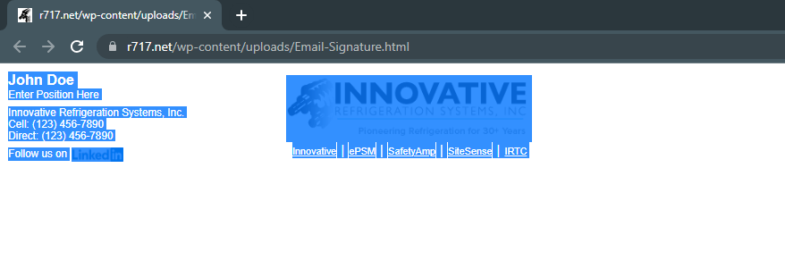 1. Click the button below to open the signature template. It will open a new tab that displays the template.