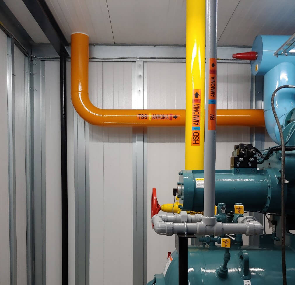 These standards must be followed from the design process (IIAR 2) all the way through long-term maintenance of the system (IIAR 6). IIAR standards further cover items like: proper mechanical room signage, emergency stops, relief valves, valve tags, pipe labels, and even methods for testing controls and safety systems.