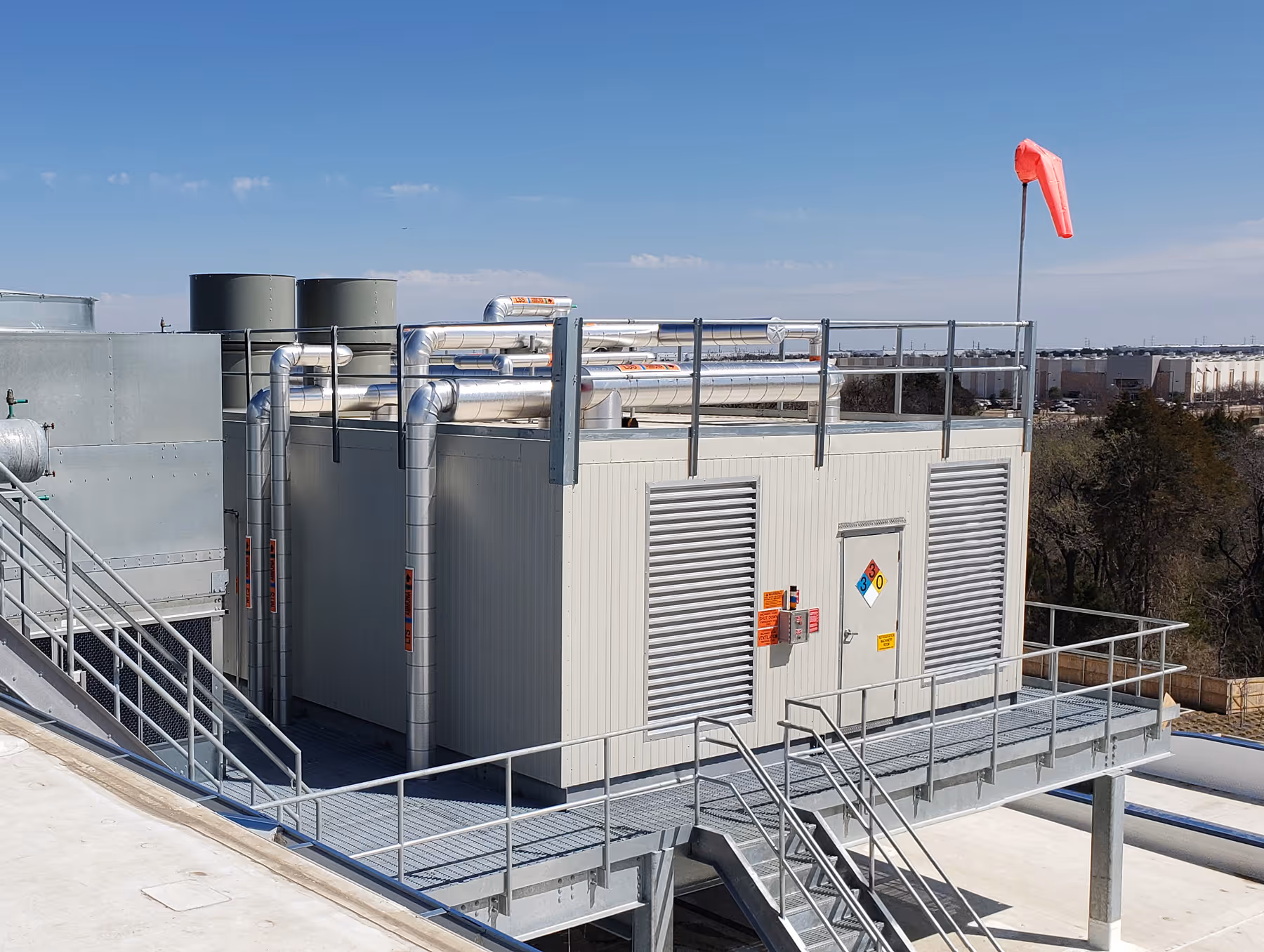 Prepackaged engine rooms may be configured for rooftop, grade-level, or adjacent placement based on facility layout, load requirements, and operational preferences.
